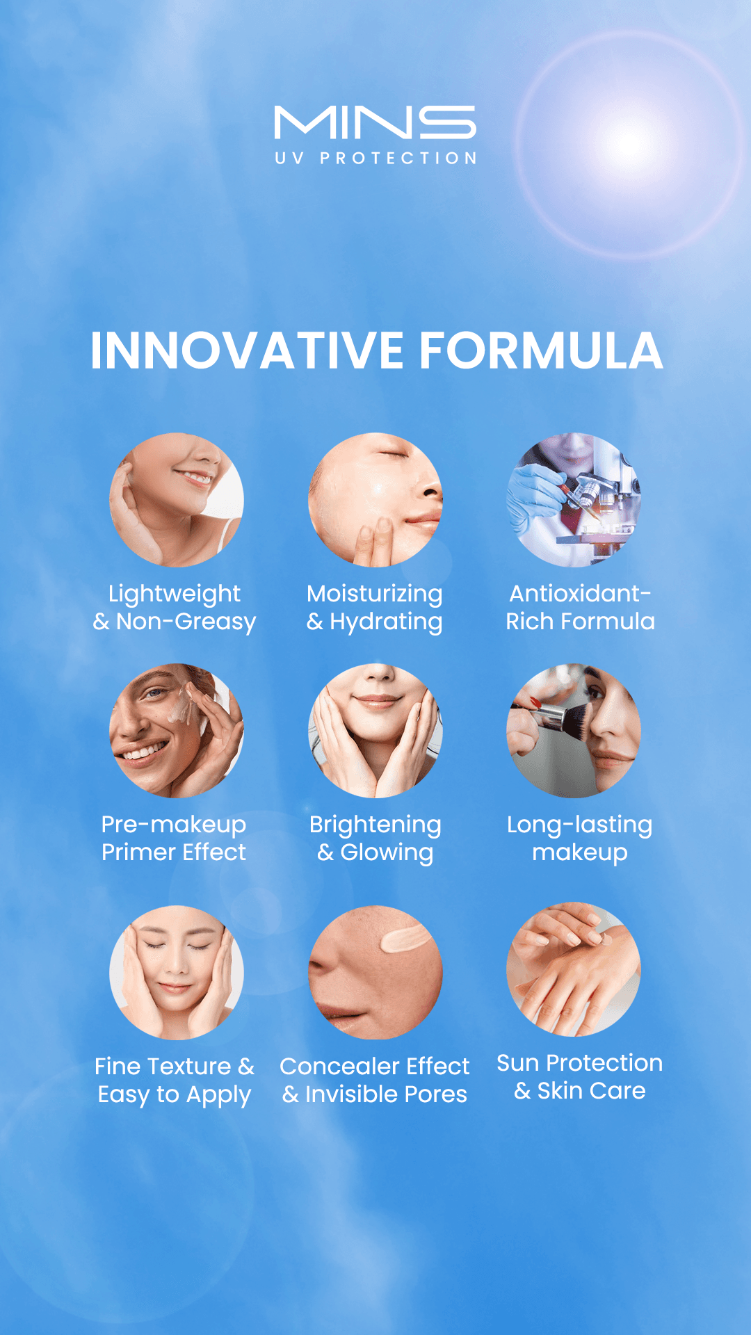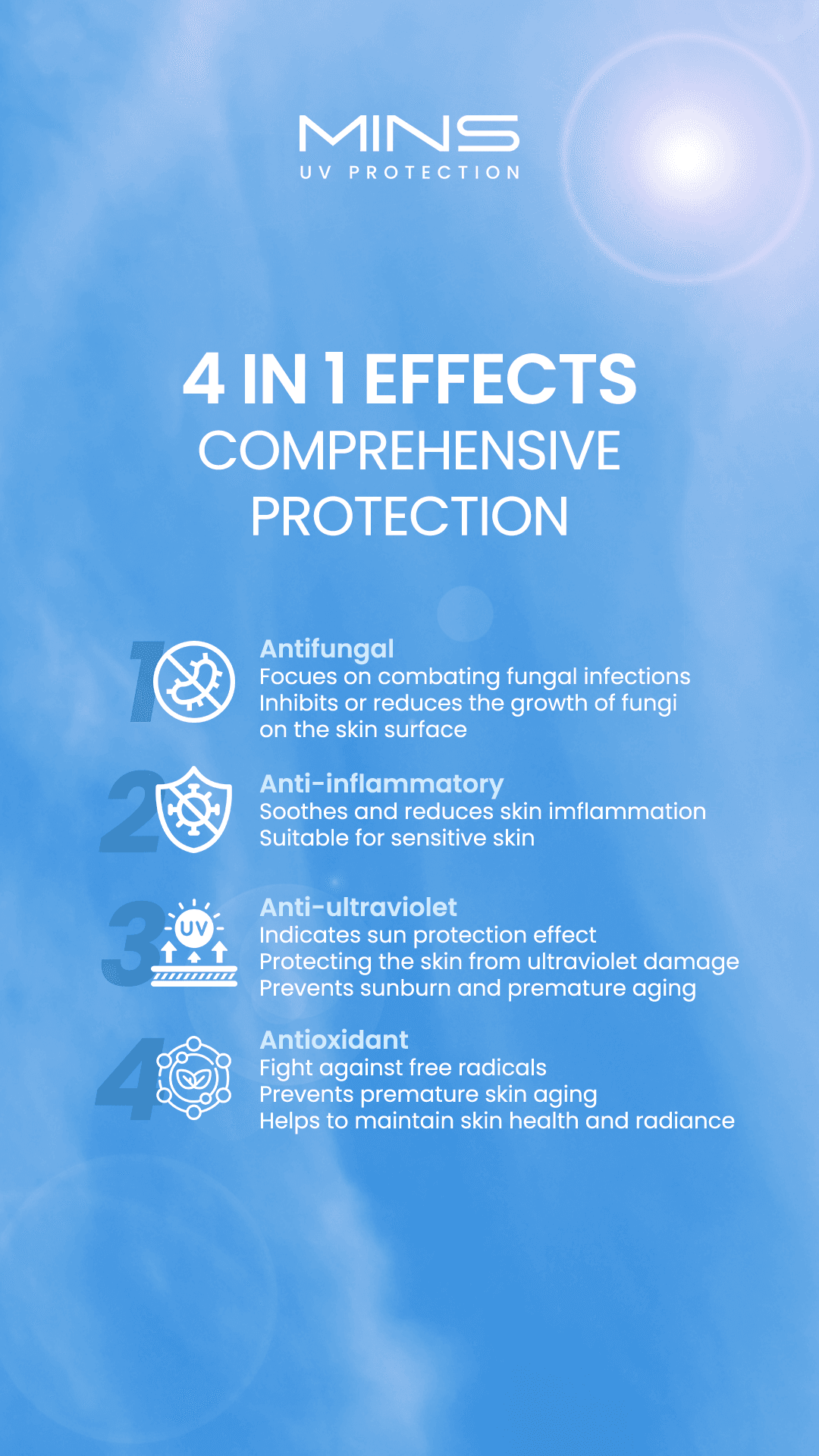 MINS防晒具有4合1功效: